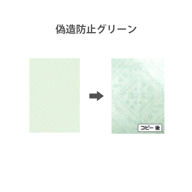 原本をコピーすると「コピー」等の文字が浮き出し、且つ印刷文字が変形する偽造防止印刷技術により、違法複写を簡単に見分けることができます。