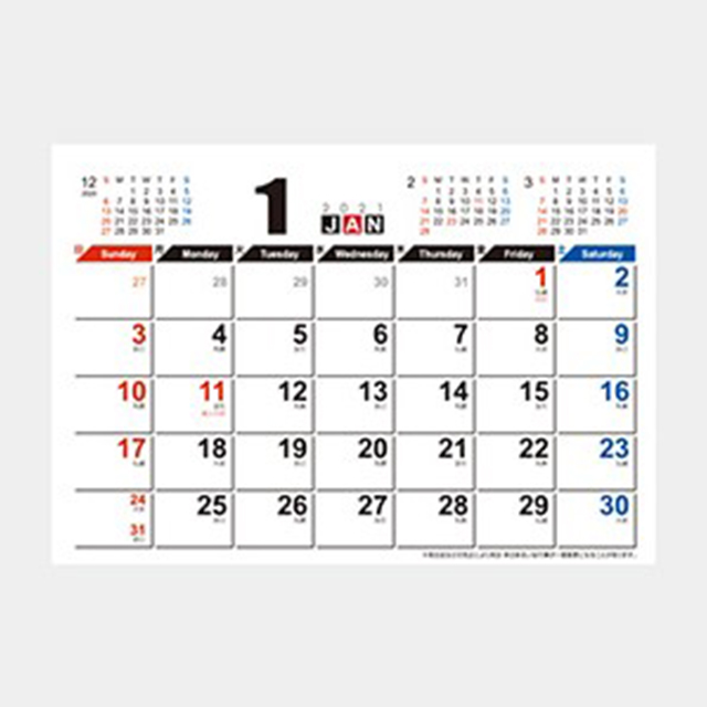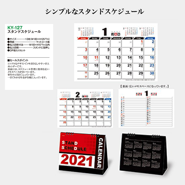 シンプルなデザインでメモ書きもし易い卓上カレンダーです。裏面にはスケジュール管理に便利な広いメモスペースが付いています。翌年1月まで入っています。年表付き。