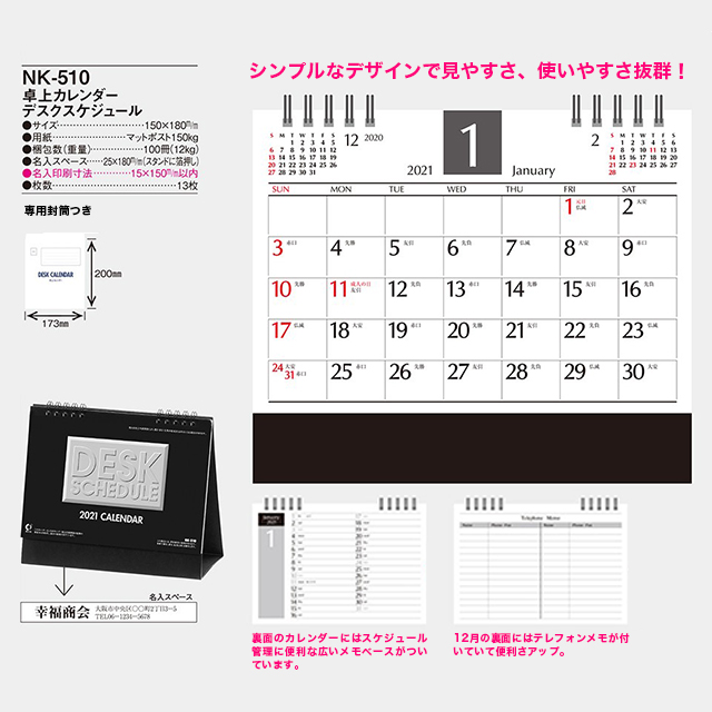 ・NK-510 卓上カレンダー《デスクスケジュール》