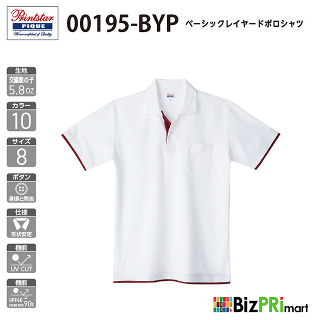 ・Printstar(プリントスター)5.8オンス ベーシックレイヤードポロシャツ ポケット付き 00195-BYP